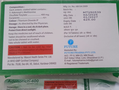 अडिनोरिच - 400 टैबलेट का उपयोग यकृत रोगों के प्रबंधन में किया जाता है, जिसमें इंट्राहेपेटिक कोलेस्टेसिस और दीर्घकालिक यकृत विकार जैसी स्थितियाँ शामिल हैं। यह यकृत की प्राकृतिक विषहरण प्रक्रियाओं में सहायता करता है, ग्लूटाथियोन जैसे एंटीऑक्सीडेंट स्तरों को बहाल करने में मदद करता है और पित्त प्रवाह में सुधार करता है। यह यकृत कोशिकाओं की रक्षा करता है और उनके स्वस्थ कार्य को बढ़ावा देता है, जिससे समग्र यकृत स्वास्थ्य को बनाए रखने में महत्वपूर्ण भूमिका निभाता है